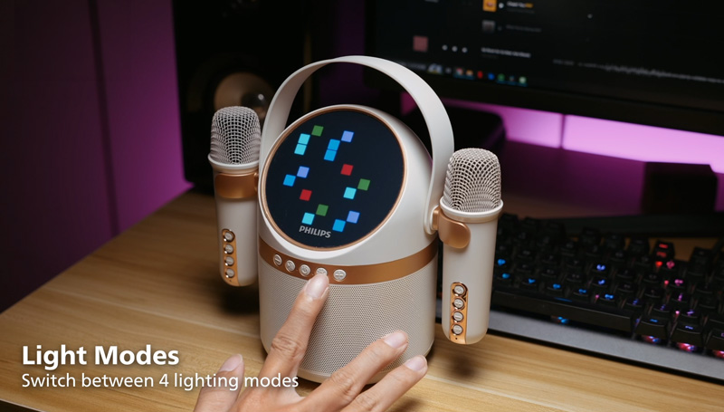 This great speaker features four multi-colored light modes so you can add some fun shapes and colors to your music. Choose between an assortment of display settings to see the speaker's screen light up with squares in different patterns and colors.