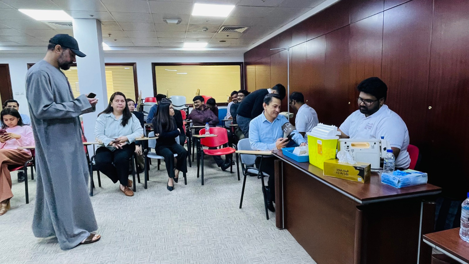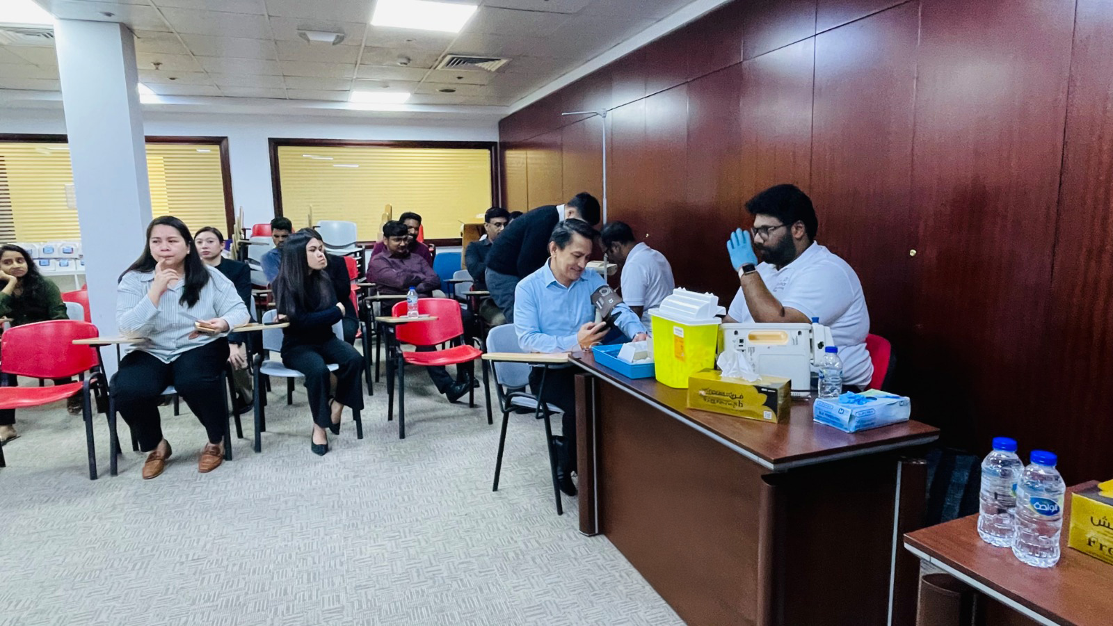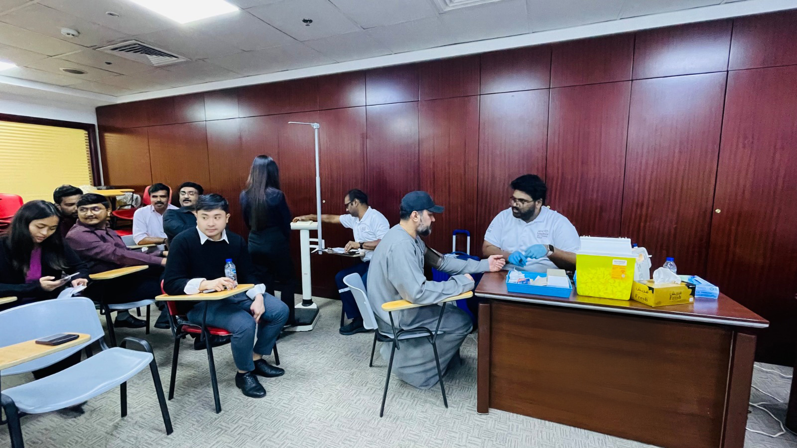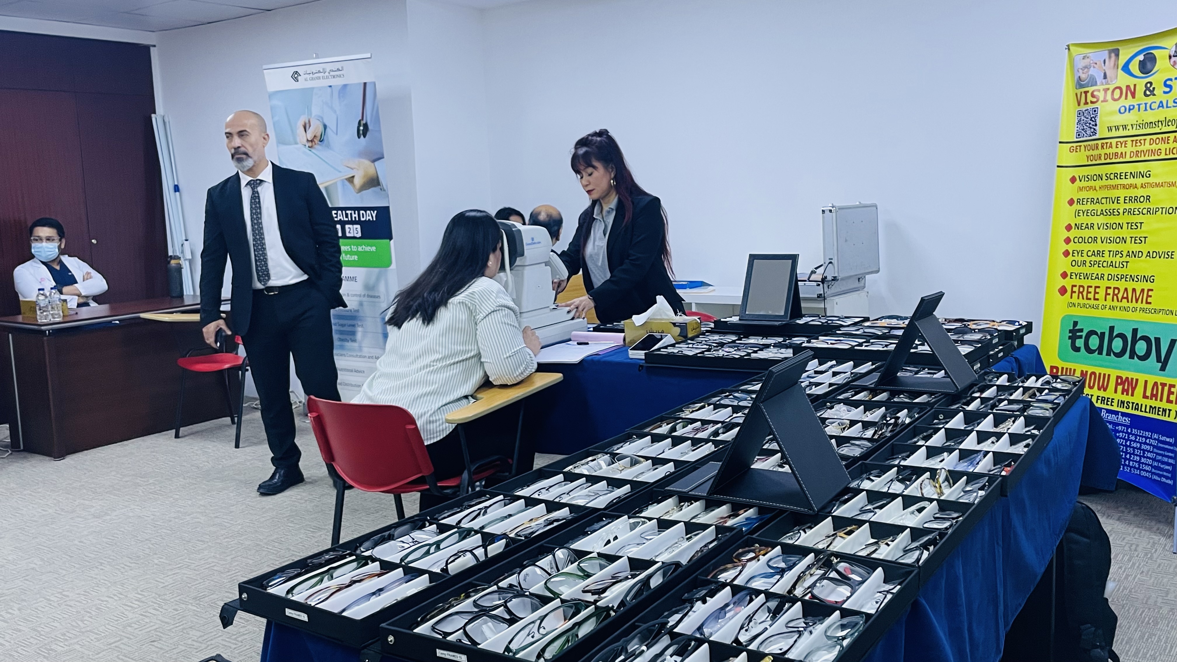 Al Ghandi Electronics recently organized the Annual Health Day Wellness Camp at its main office in Nad Al Hammar. Many staff members took the opportunity to have a free check-up on their health status by a medical diagnostic team from Medeor Hospital. The tests conducted included random blood sugar level, blood pressure, and BMI assessment. Based on individual reports, a General Practitioner was at hand for one-on-one consultation and advice. Furthermore, the General Practitioner also gave a talk and presentation on general health & wellness maintenance and stress management. Staff members also availed of free eye check-up and consultation with optometrists from Vision Style Optical. There were free frames on offer with very attractive, affordable cost for various types of lenses. The staff enthusiastically attended the Wellness Camp to benefit from the valuable medical and eye check-ups and advice for a healthier future.
