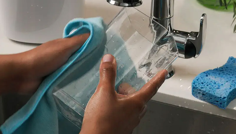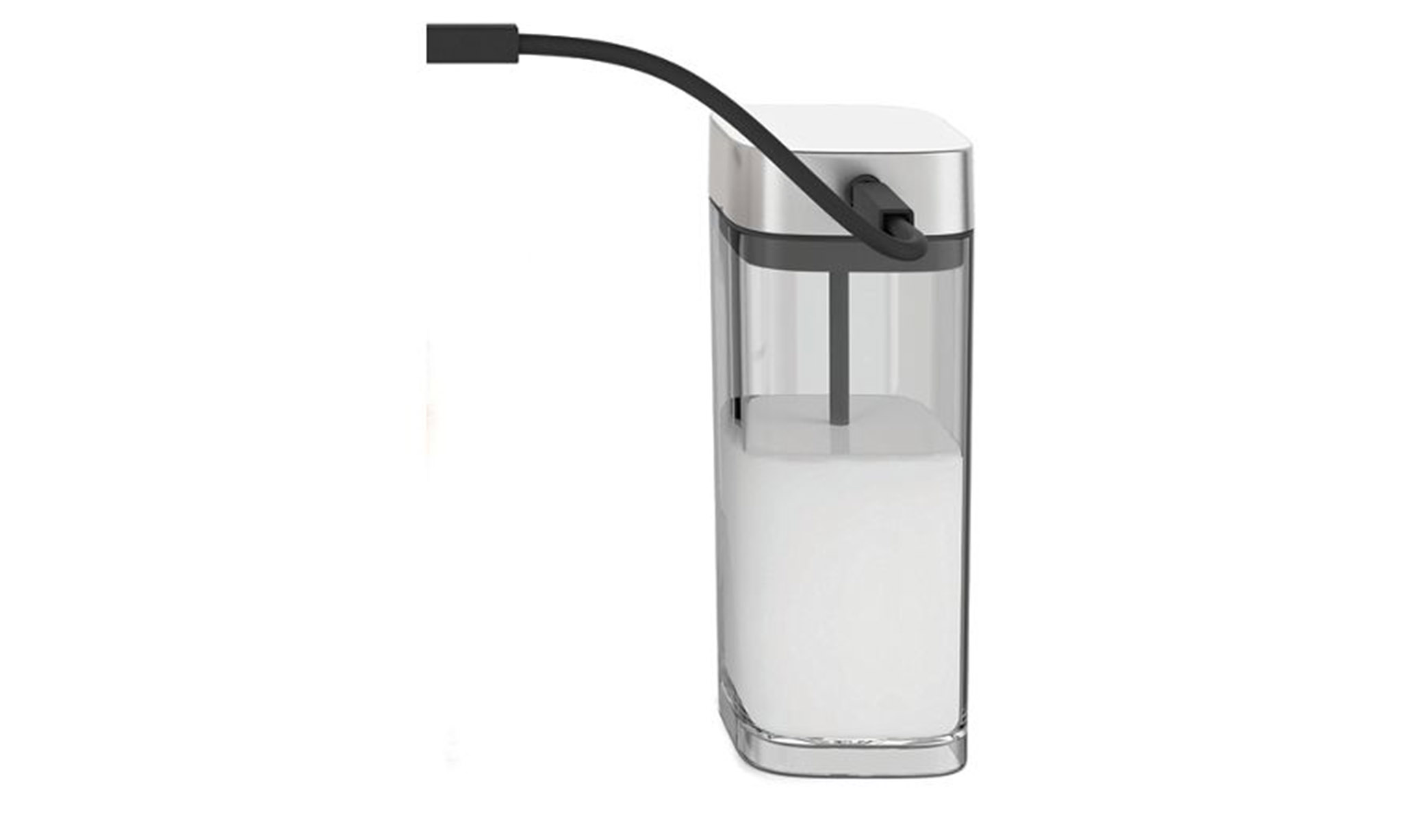 This sleek and stylish milk container and lid can be washed in warm soapy water. The tube is cleaned during the Fully automatic espresso machine's milk system cleaning cycle. Your machine will tell you when this needs to be done.