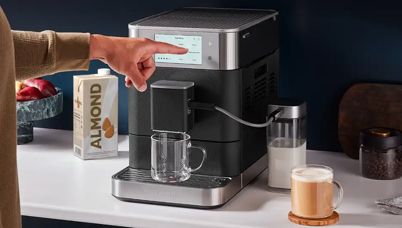 There's a whole lineup of tasty coffee drinks to choose from with your Fully automatic espresso machine. This milk container is where it all starts. Choose your milk, fill up the container, then connect to your espresso machine so that it can foam and texturise or simply heat the milk for you. Our KF8 model has a special plant-based mode, so you have even more choice for your drinks.