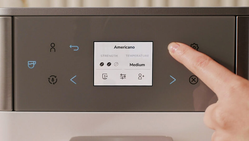 Time for a break? Your favourite drinks are moments away. With a colour display screen, you can select 15 recipes options like Espresso, Americano, Cappuccino, and more. Make them just the way you like them, with 1 or 2 shots and the option to customise by body, temperature, order of milk or coffee, milk and coffee volume too. You can even save your most-loved settings in up to 4 user profiles, so family and friends will have shortcuts to their go-to drinks.
