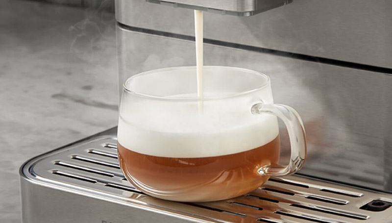 Automatically steam or froth the exact amount of milk needed for each exceptional espresso drink. Simply put the milk tube into a milk carton or container of your choice — straight from the fridge — and it will be incorporated into the recipe. The machine achieves the ideal heated milk and microfoam textures for satisfying milky drinks like Cappuccino.