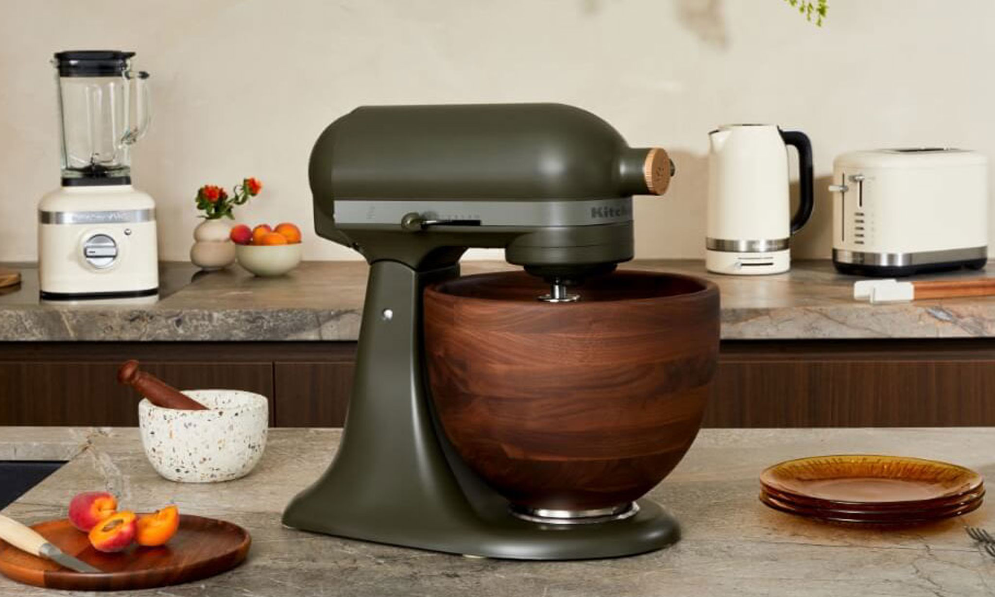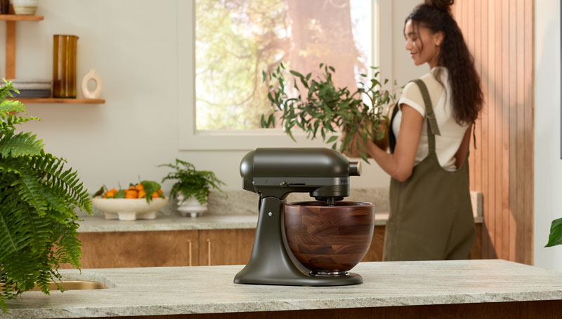 Fresh from that series comes the KitchenAid Evergreen tilt-head mixer, deep green, with a true walnut bowl. Like a breath of fresh air, it brings the essence of outdoors within, echoing the rich hues of a tree-filled forest.