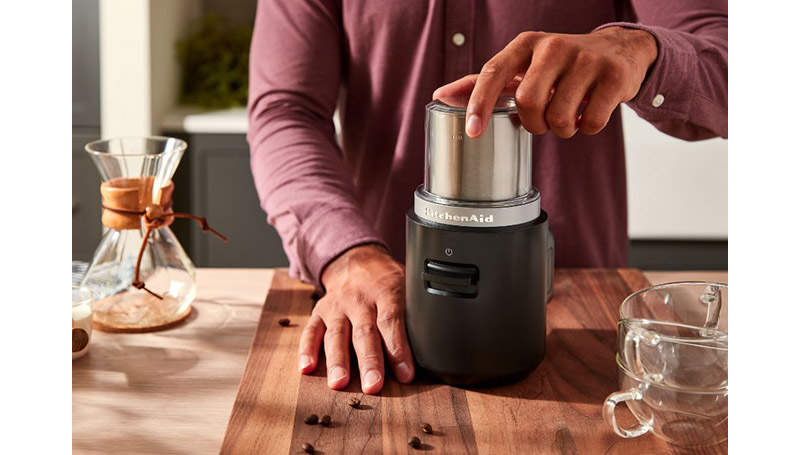 The power to make, the power to move! This portable coffee grinder is part of the KitchenAid Go Cordless System and allows you to make the freshest brews, wherever you are. Use it indoors or outdoors, or pop it in your case when you travel.