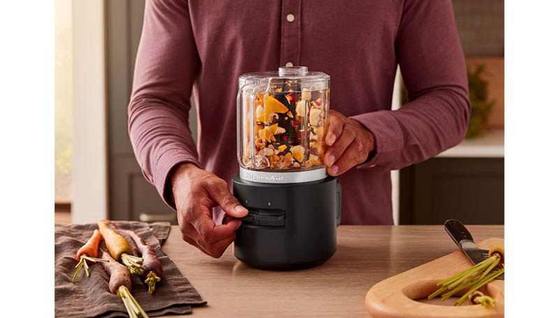 The power to make, the power to move! If you're looking for a neat, compact cordless food processor, here it is. Part of the KitchenAid Go Cordless System, this chopper frees you up to chop, purée and whisk while you move around the kitchen, or even outdoors.