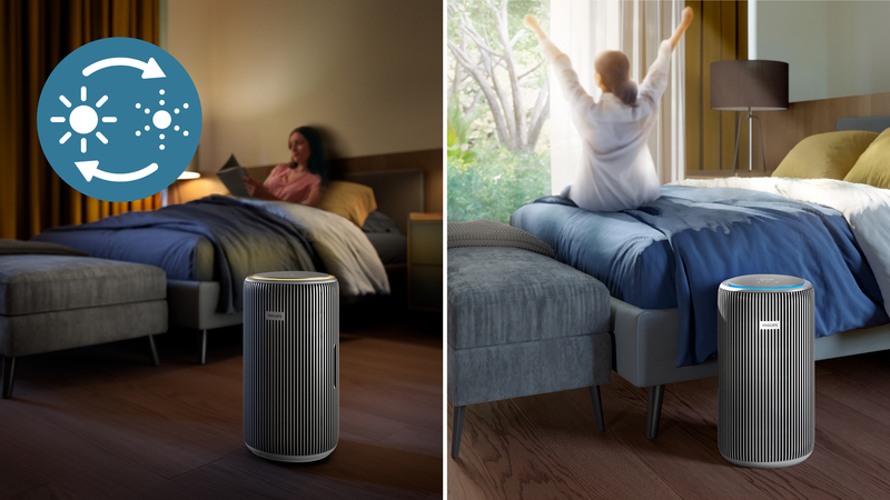 Smart scheduling to fit your routine. Choose Fresh Wake-up to slowly ramp up purification speed before your set wake-up time. At night, Fresh Bedtime cleans your room thoroughly before you come to bed and welcomes you with a cosy, warm night light.
