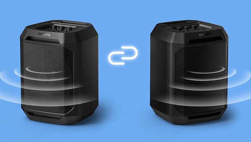 Connect and get the party started! Stream your tunes via Bluetooth or easily connect other devices via audio-in. You can also wirelessly connect to another TAX2208 speaker.