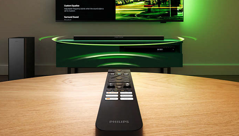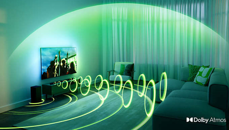 Dolby Atmos places sound effects in the space around and above you, creating three-dimensional spatial sound that pulls you in deeper. Activate it via the surround-sound button on the soundbar's remote, or the Philips Home Entertainment app. You'll feel like you're right in the middle of the action.