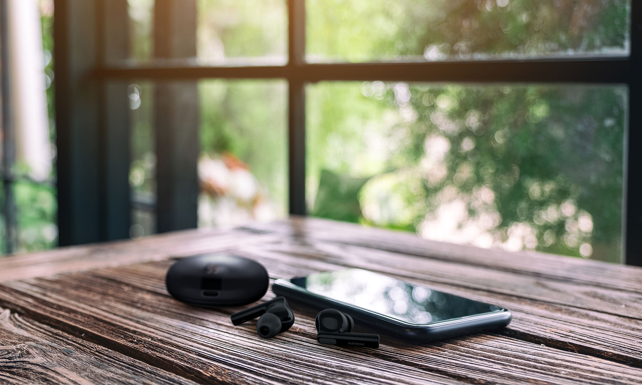 Noise canceling quietens external noise, including wind, so you can focus on your tunes or calls. Leave it on auto or use the Philips Headphones app to adjust. Want to hear more of what’s going on around you? Tap an earbud to activate Awareness Mode.