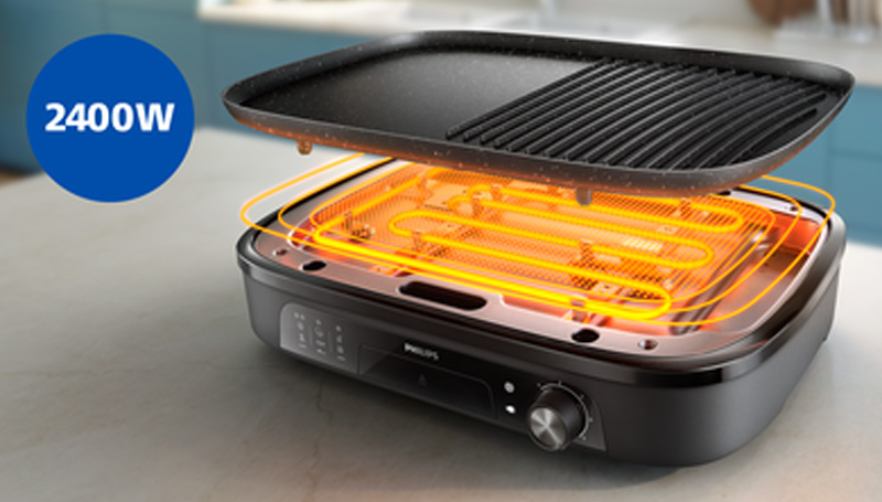 Enjoy the flavors of home grilling with the Philips Table Grill. The large grilling surface delivers an effortless grilling experience for the whole family.