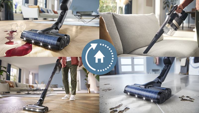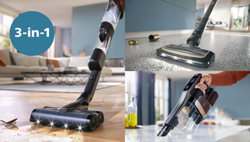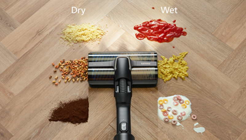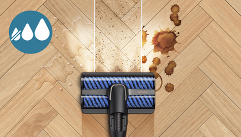 3-in-1 cleaning solution: Vacuum&Wash, Vacuum and Handheld Vacuum&Wash in one go: skip vacuuming Vacuum only & Handheld setups if wet cleaning is not needed Patented high speed brushes: AquaSpin 4000 RPM Hygienic Auto-Clean system: no manual brush cleaning Always clean with fresh water thanks to PowerCyclone Aqua 3 dedicated cleaning modes for every need Dual brush system removes more wet & dry dirt* High performance cleaning for the full house Gentle on hard floors: ultra soft microfiber brushes Reveal hidden wet & dry dirt thanks to LED nozzles Deep reach under low furniture, exceptional maneuverability Ideal for pet owners: easily clean daily pet messes Clean close to plinths with up to 6 mm margin