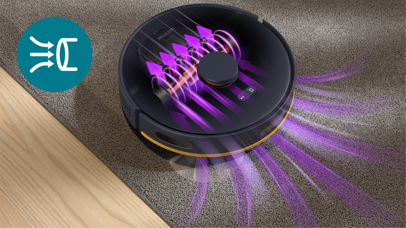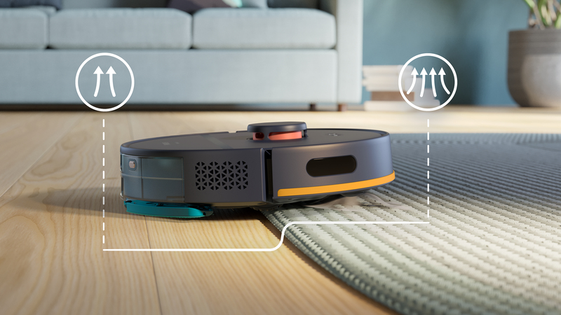 The robot automatically boosts suction power when it drives onto a carpet or rug to capture fine dust particles hidden deep inside the carpet*.