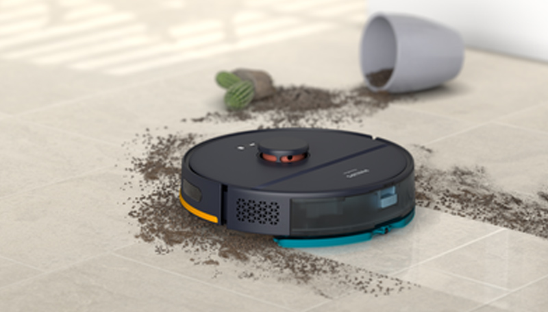 The robot vacuums and mops hard floors in one go to tackle the fine layer of dust that builds up on floors every day. Removing more fine dust than vacuuming alone, ensuring clean feet even when barefoot.