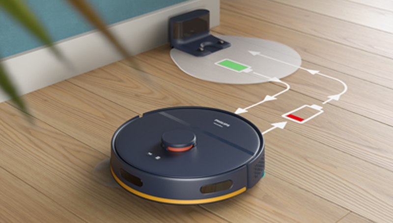 Experience uninterrupted cleaning with no battery worry, offering up to 130 minutes* of runtime, enough for up to 120 m?2; on a single charge. When the battery runs low, the robot will automatically to recharge. Once the battery is charged, it will return to the place where it stopped to resume the cleaning.