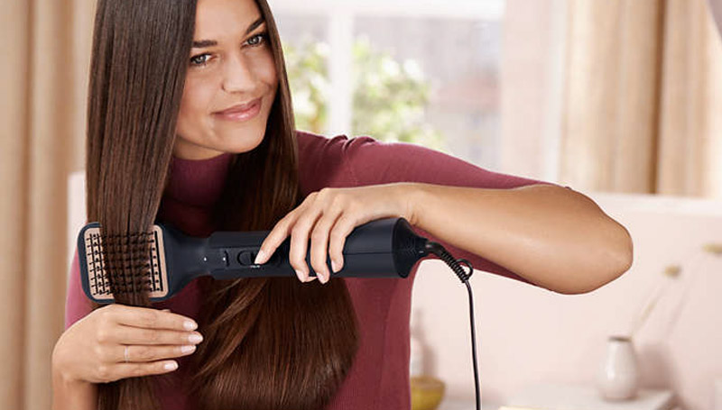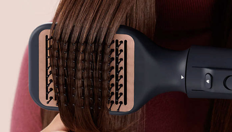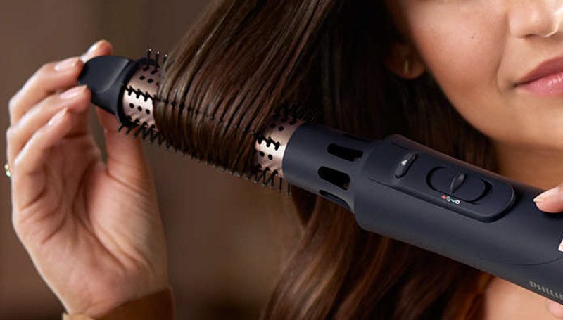 This airstyler gives your hair instant care with ionic conditoning. Charged negative ions eliminate static, condition the hair and smooth down the cuticles to intensify the hair’s shine and glossiness. The result is hair that is beautifully shiny, smooth and frizz-free.