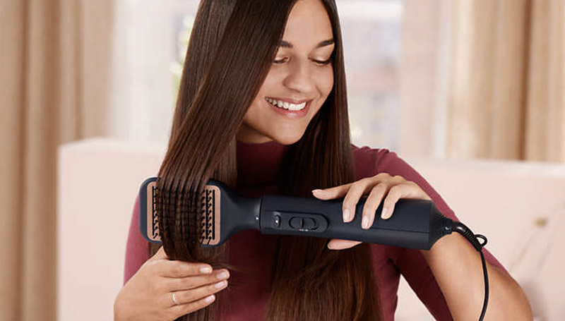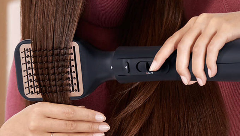 The paddle-shaped straightening brush is designed to help you create naturally straight look in one go.