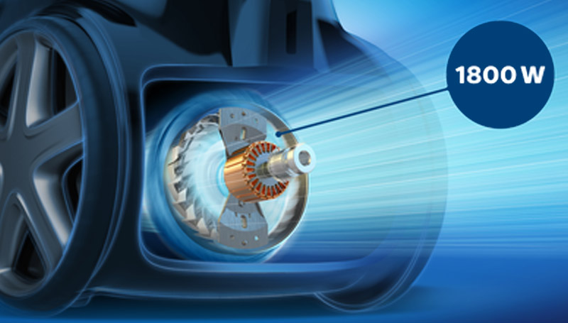 Durable 1800W motor generates up to 360W of high suction power for thorough cleaning results.
