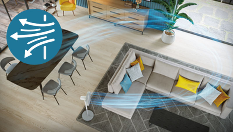 Long-range airflow that can reach up to 30 meters. Enjoy maximum comfort and feel refreshed no matter where you are; everyone in the room can feel the cool breeze.
