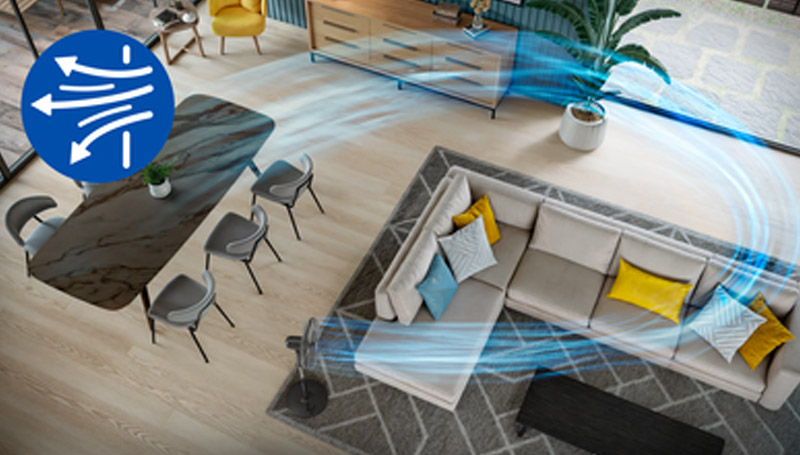 "Provides a powerful cooling airflow of 3250 m3/h to quickly cool the entire room. Say goodbye to stagnant air and welcome a refreshing breeze that reaches every corner of your space. "