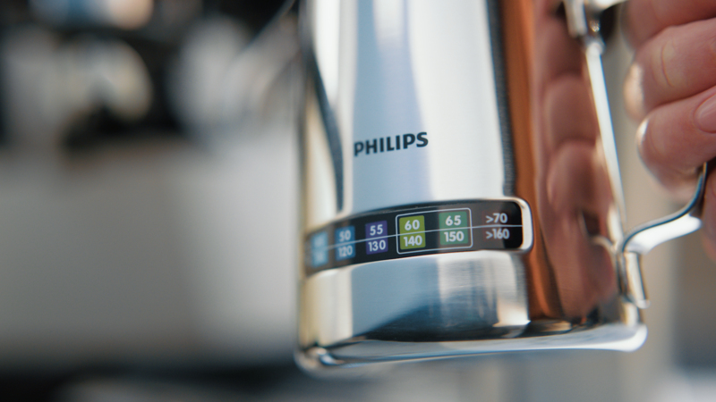 Enjoy the ease of creating smooth microfoam, perfect for latte art, with our 450 ml temperature perfection milk jug and powerful steam wand. The temperature strip on the milk jug enables you to achieve the right milk foam temperature and create the velvety texture effortlessly, so you can savour your coffee just the way you like it.