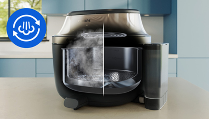 The fat buildup in the basket is softened and easier to be removed with our automatic SteamClean function.