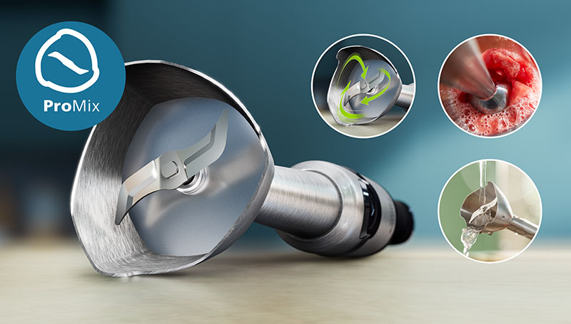 Cleanup couldn't be easier. Due to the ProMix Technology you can release the blending bar and rinse clean under running water.