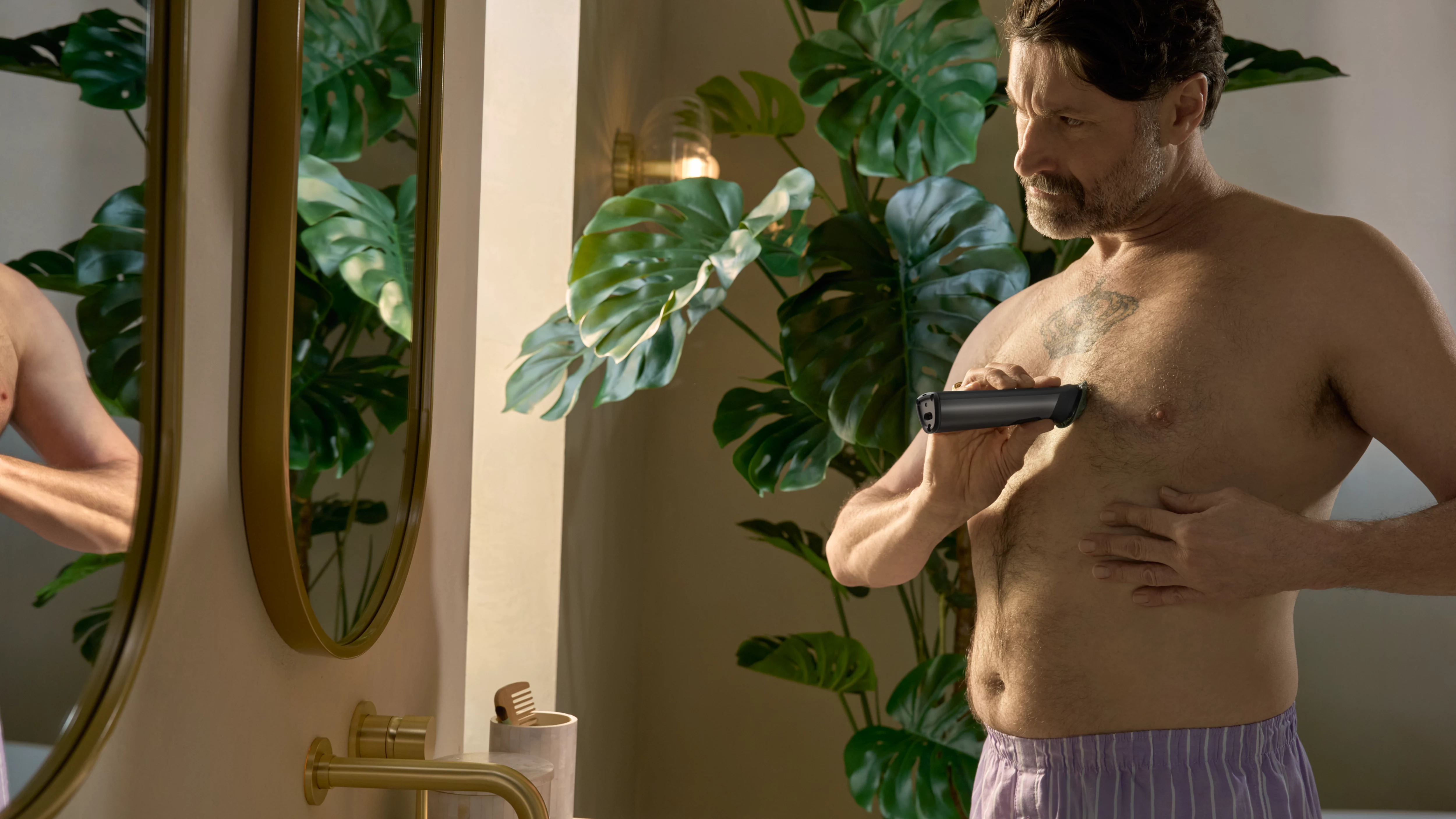 Experience a close and comfortable trim below the neck with our innovative new body blade. This specially designed trimmer features rounded tips that ensure a gentle touch, making it perfect for the most sensitive areas of your body.