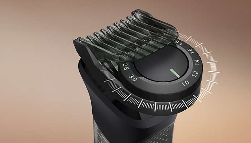 The trimmer’s multi-comb system allows you to choose length settings from 0.5mm to 20mm to easily maintain your hairstyle at home.