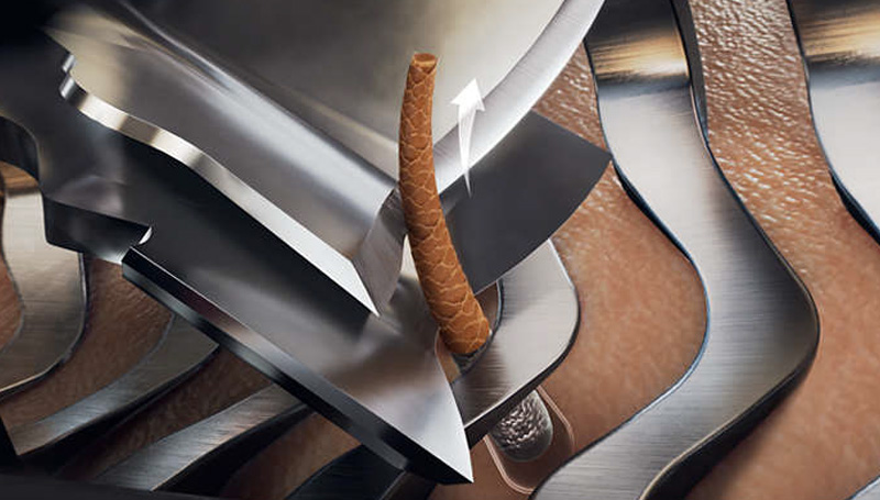 Our patented Triple Action Lift & Cut system lifts the hair gently from its root to cut it precisely up to -0.08 mm root-level, without cutting your skin. For an ultimate closeness that lasts all day.