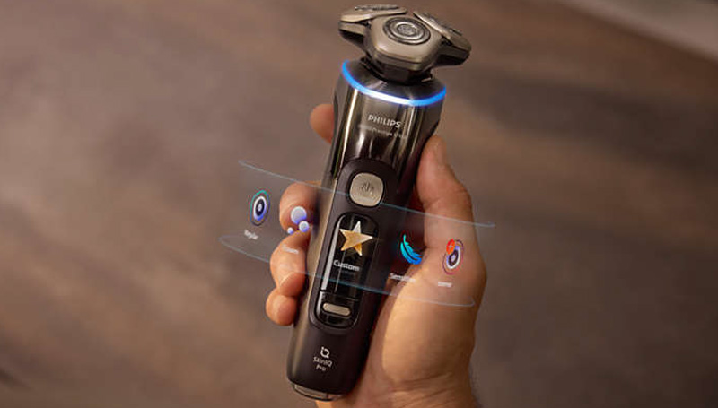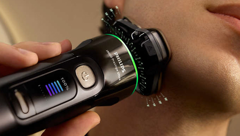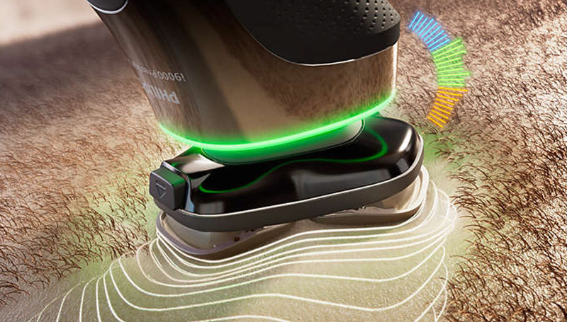 The shaver's intelligent sensor reads hair density 500 times a second and auto-adapts the cutting power for an effortless and gentle shave, even on dense beards.