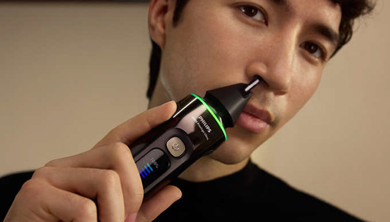 Our click-on nose trimmer features ProtecTrim technology and is angled precisely to effectively remove unwanted hair from your nose and ears.
