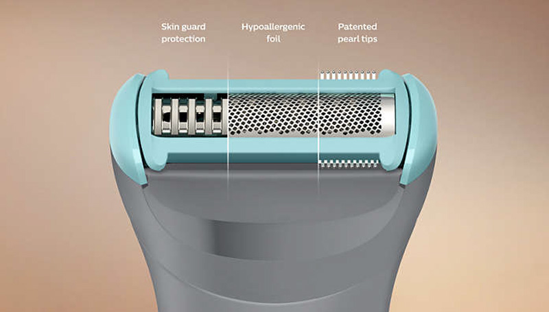The Triple Protect shave system has pearl tips for enhanced skin comfort, diamond-shaped holes for effortless skin doming while the guard significantly minimizes skin irritation