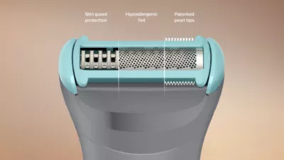 The Triple Protect shave system has pearl tips for enhanced skin comfort, diamond-shaped holes for effortless skin doming while the guard significantly minimises skin irritation.
