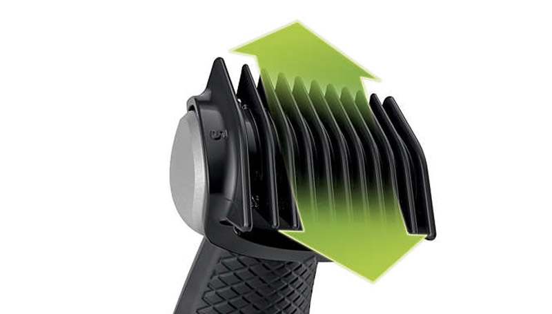 Cut hair that grows in any direction using the bidirectional trimmer and 3mm comb. Pre-trimming is recommended for thicker hair.