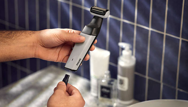 Your body groomer is easy to hold and manoeuvre, with a rubber ergonomic grip for more controlled trimming