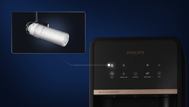 ClearSmart indicator reminds you of on-time filter replacement to ensure the water quality. When the filter is approaching the end of life, the indicator starts to flash, and turns red when the filter lifetime ends.