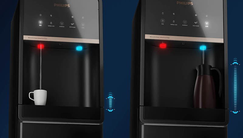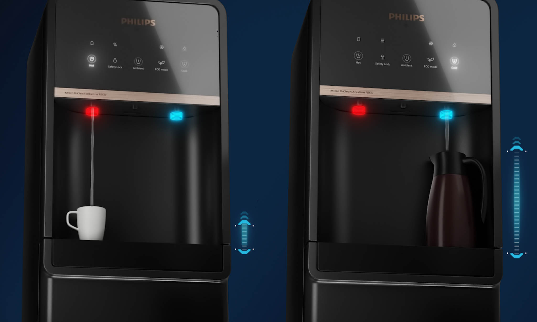 Wide dispensing area easily fits various sizes of cup, glass, bowl and even pot.
