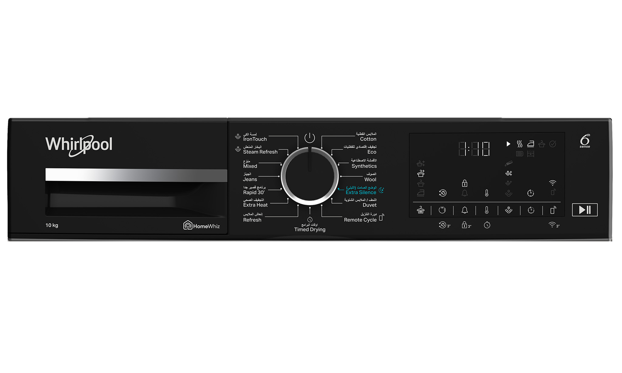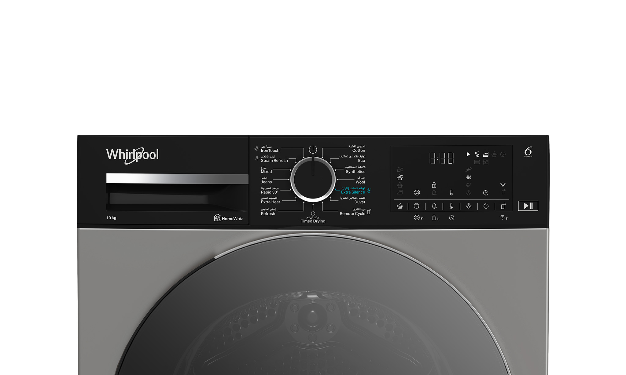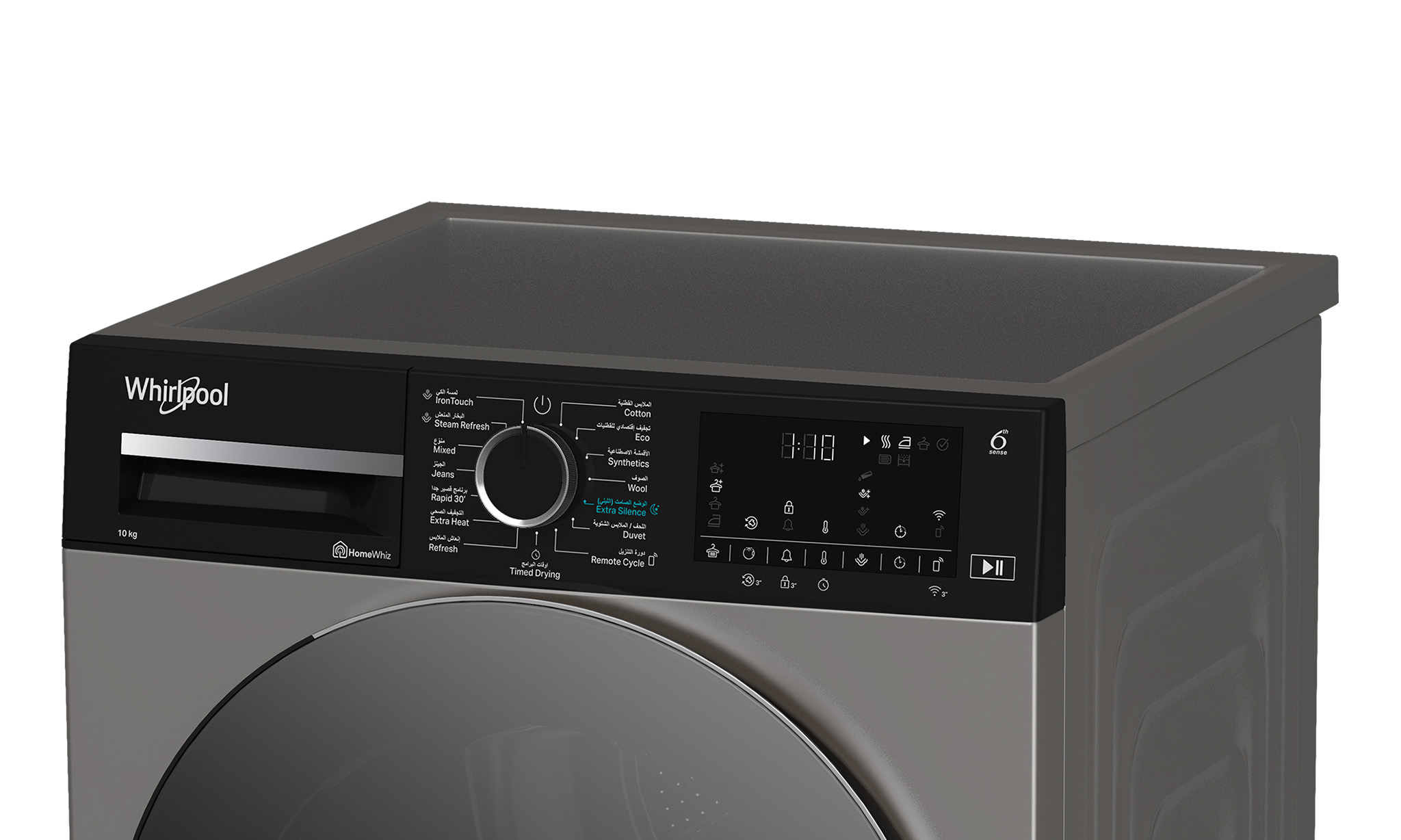 This Whirlpool freestanding Tumble Dryer features: silver color. Outstanding 10kg drum capacity, so you will never run out of space. Exclusive 6th SENSE technology that constantly monitors the moisture in the drum, protecting your clothes and providing ideal drying results. Heat pump technology that effectively re-heats the air in the appliance, significantly reducing energy consumption.